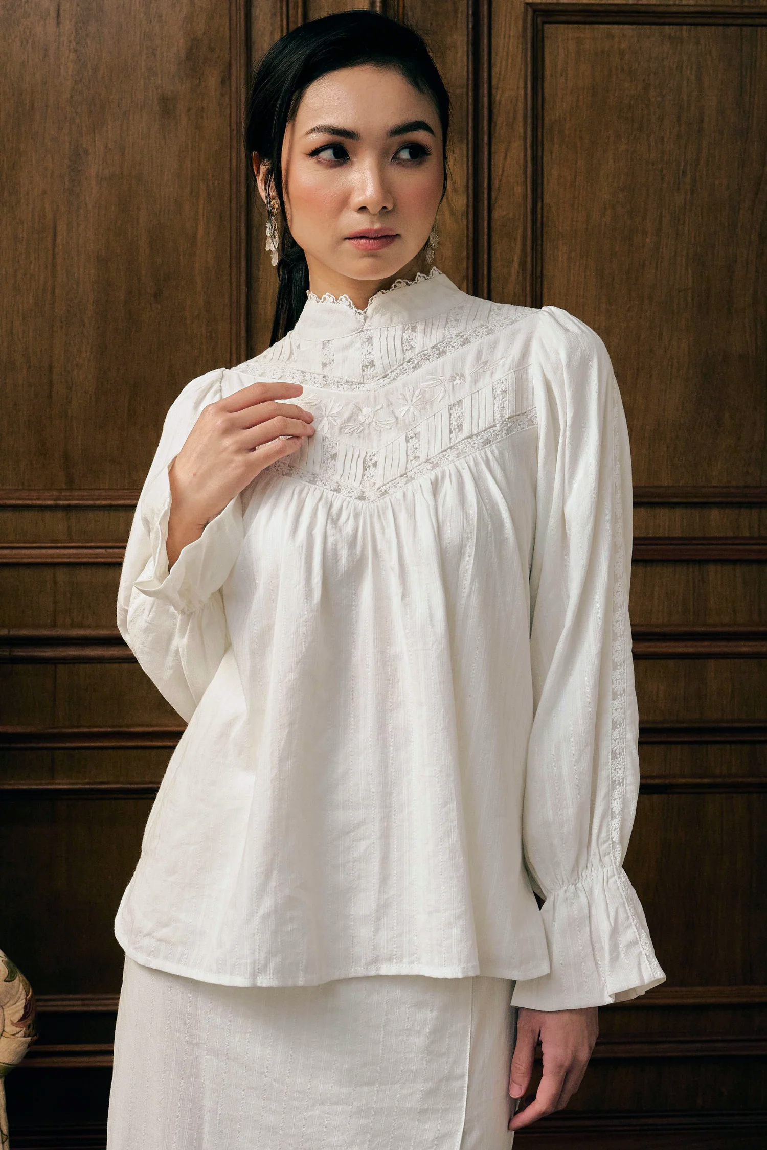 The Elowen Kurung carries a quiet strength — thoughtful in construction, composed in silhouette, and rich in detail without feeling heavy. Designed with a softly structured top and a straight, fluid skirt, it balances refinement with ease in a way that feels intentional and timeless.